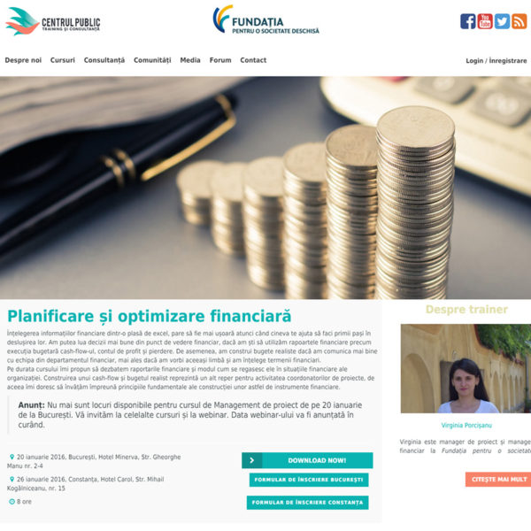 Realizare design logo, realizare design responsive pentru site, setare platformă de e-learning și programări online, sistem de autentificare, integrare video, newsletter, plugin pentru cautare, implementare forum, realizare site multilingual, calendar, formular de contact, integrare social media.